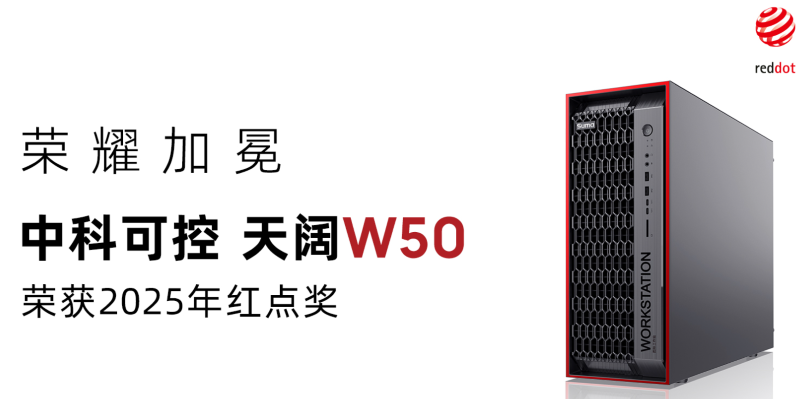中科可控旗下高端工作站产品天阔W50凭借新颖的工业设计语言与卓越的用户体验,从全球上万件参评作品中脱颖而出,荣获2025年度红点产品设计大奖。